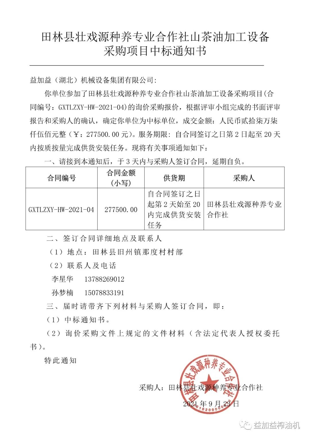 益加益集團(tuán)憑借過(guò)硬的產(chǎn)品質(zhì)量,扎實(shí)高效的工作作風(fēng),卓越的運(yùn)作團(tuán)隊(duì)和良好的企業(yè)信譽(yù),在眾多競(jìng)爭(zhēng)對(duì)手中脫穎而出,連續(xù)中標(biāo)《中華人民共和國(guó)世界銀行貸款廣西貧困片區(qū)農(nóng)村扶貧試點(diǎn)示范項(xiàng)目》中全部11家專業(yè)合作社山茶油加工設(shè)備的招標(biāo)購(gòu)置。